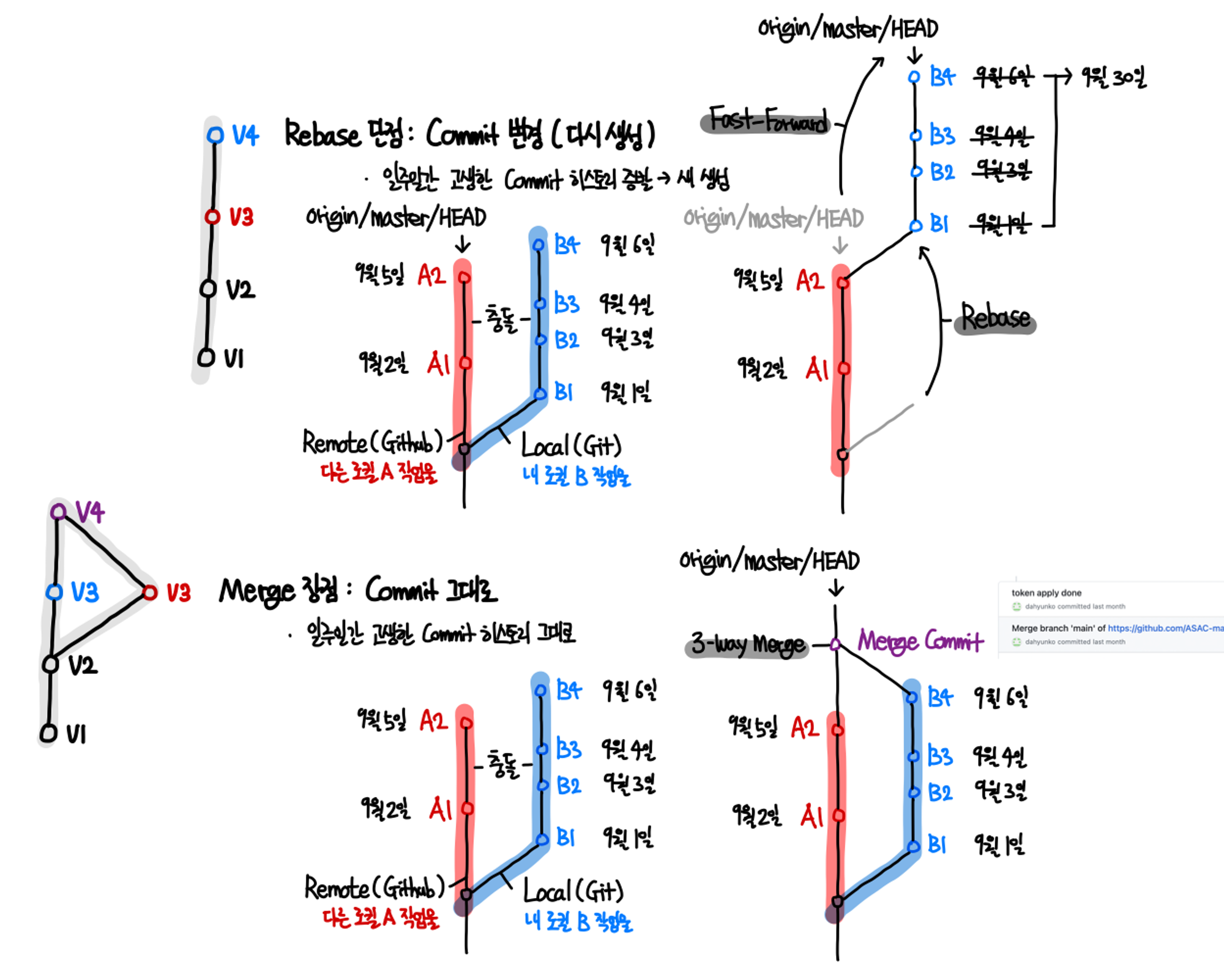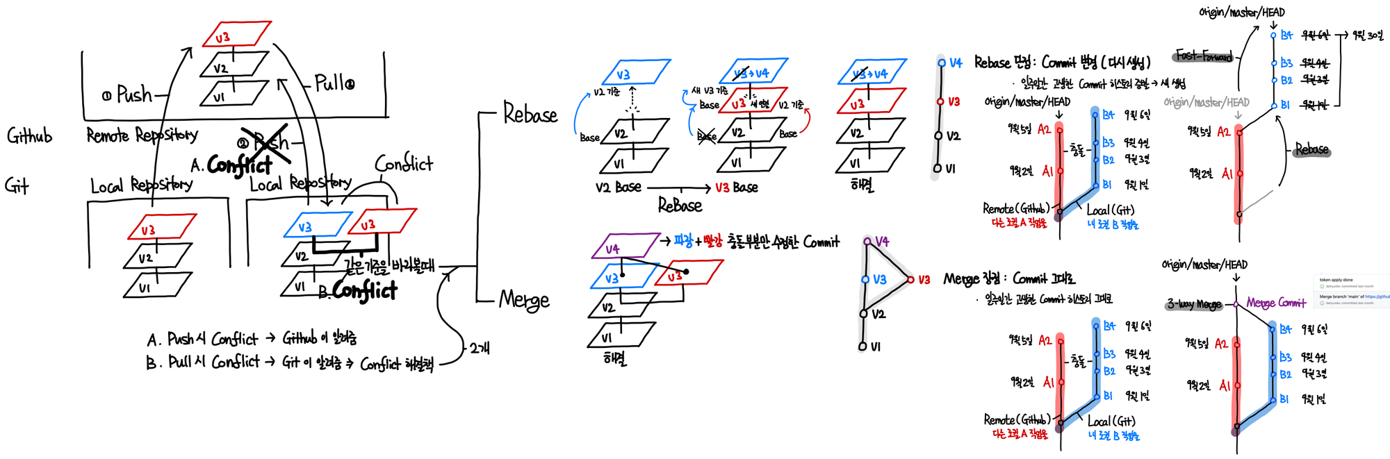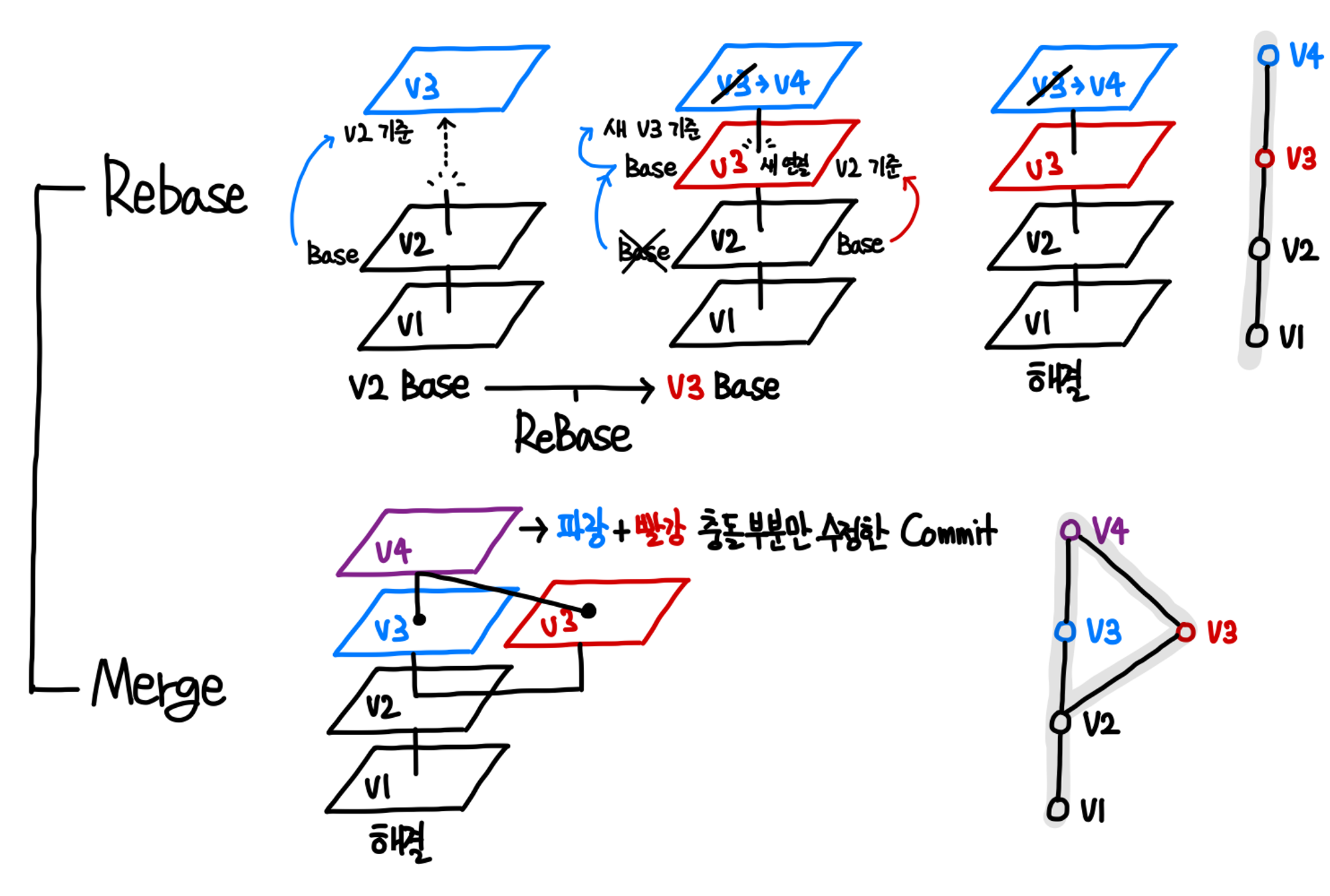Conflict ์ถฉ๋ ํด๊ฒฐ์ฑ 2๊ฐ์ง: Rebase & Merge ์๋ฆฌ๋ฅผ ๊ทธ๋ฆผ์ผ๋ก ์ฝ๊ฒ ์ดํดํ๊ธฐ