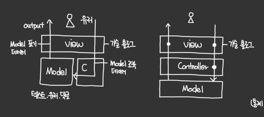 - View(HTML): "ํ๋ฉด์ ๋ณด์ด๋ ๊ฒ, ํ๋ฉด" ← Rendering