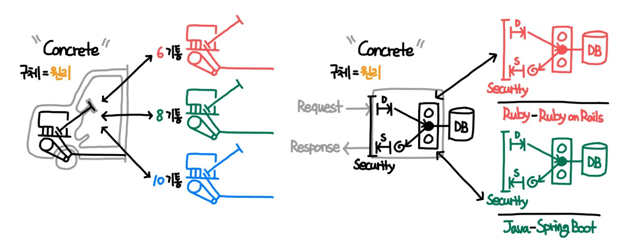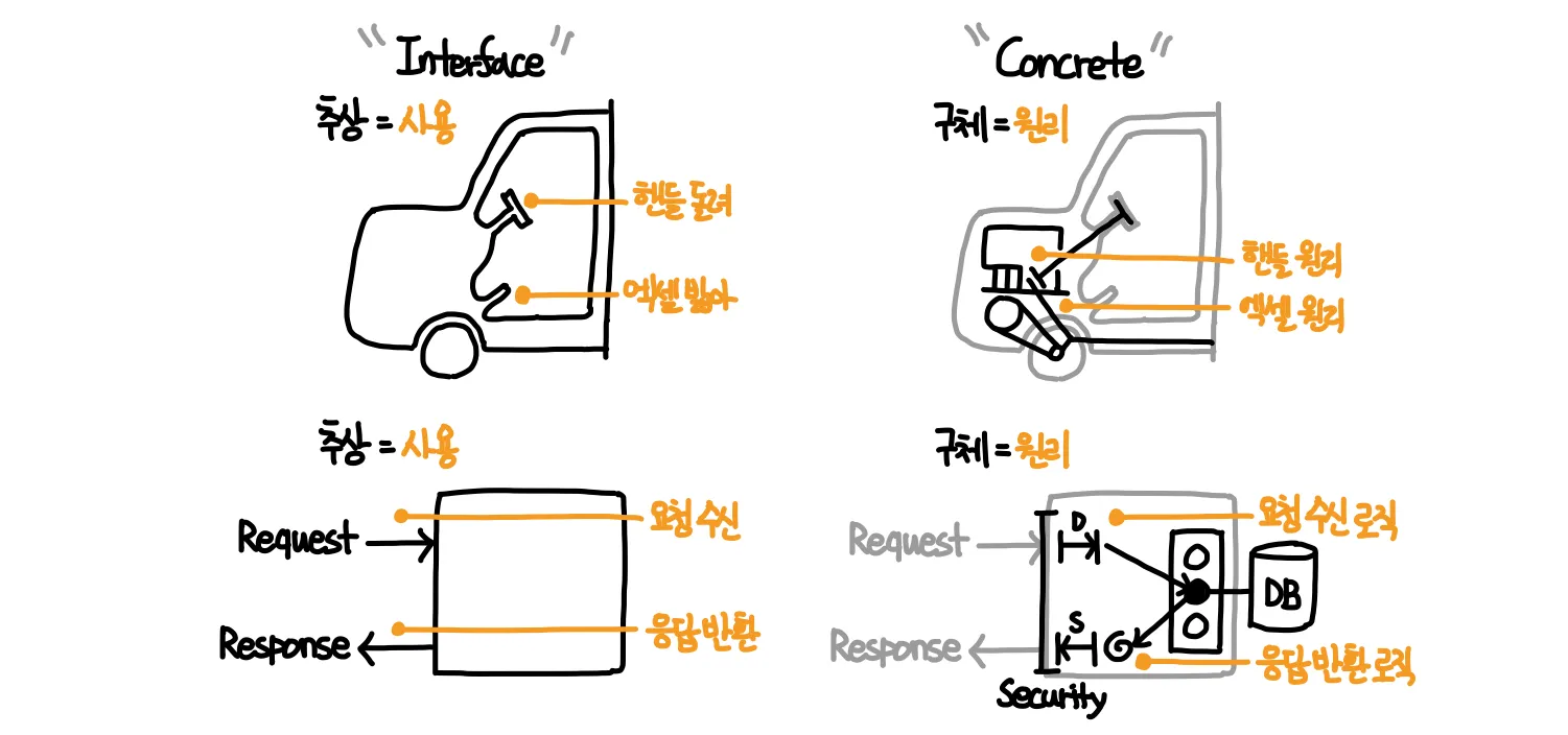 - κ·Έλ κΈ°λλ¬Έμ μΈν°νμ΄μ€λ μ μ μ μ₯μμλ§ μ¬μ©νλ©΄ λκΈ°λλ¬Έμ, κ·Έ λ΄λΆμ μ리(ꡬ체)λ μΈμ λ μ§ λ€λ°λμ΄λ λλ€.