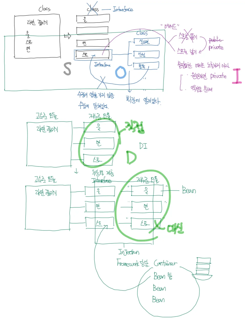 - (@Service) κ³ μμ€ λͺ¨λ ←μΈν°νμ΄μ€(μΆμν) ← (@Autowired) μ μμ€ λͺ¨λ