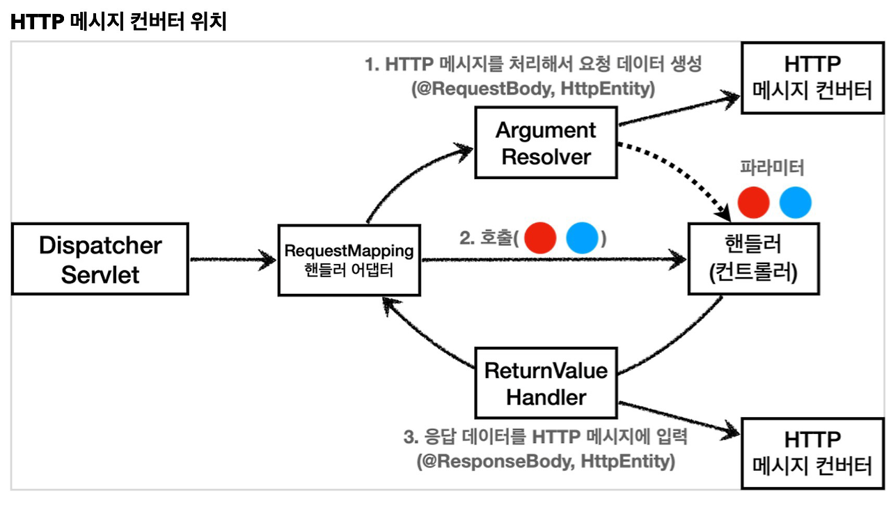 HttpMessageConverter는 클라이언트와 서버 간의 데이터 교환에서 Java 객체와 HTTP 메세지 사이를 변환하는 역할을 한다.