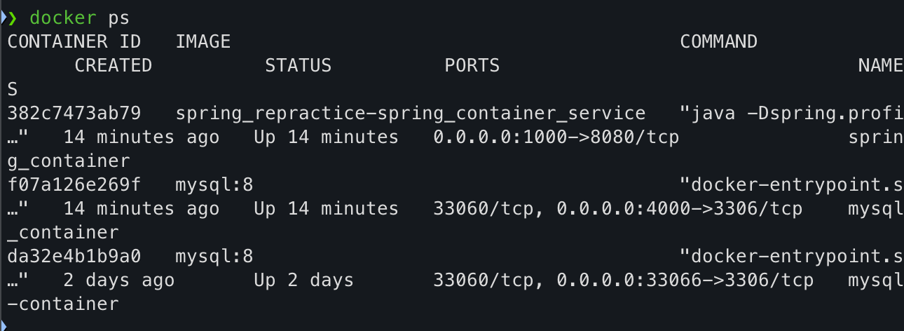 - mysql_container_service๊ฐ ๋จผ์ ์์๋ ํ spring_container_service๊ฐ ๊ตฌ๋๋๋๋ก ์์ ์ง์