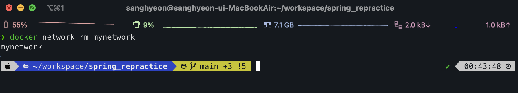 - `docker network create mynetwork`๋ฅผ ํตํด `mynetwork`๋ผ๋ ๋คํธ์ํฌ๋ฅผ ์์ฑํ๋ค.