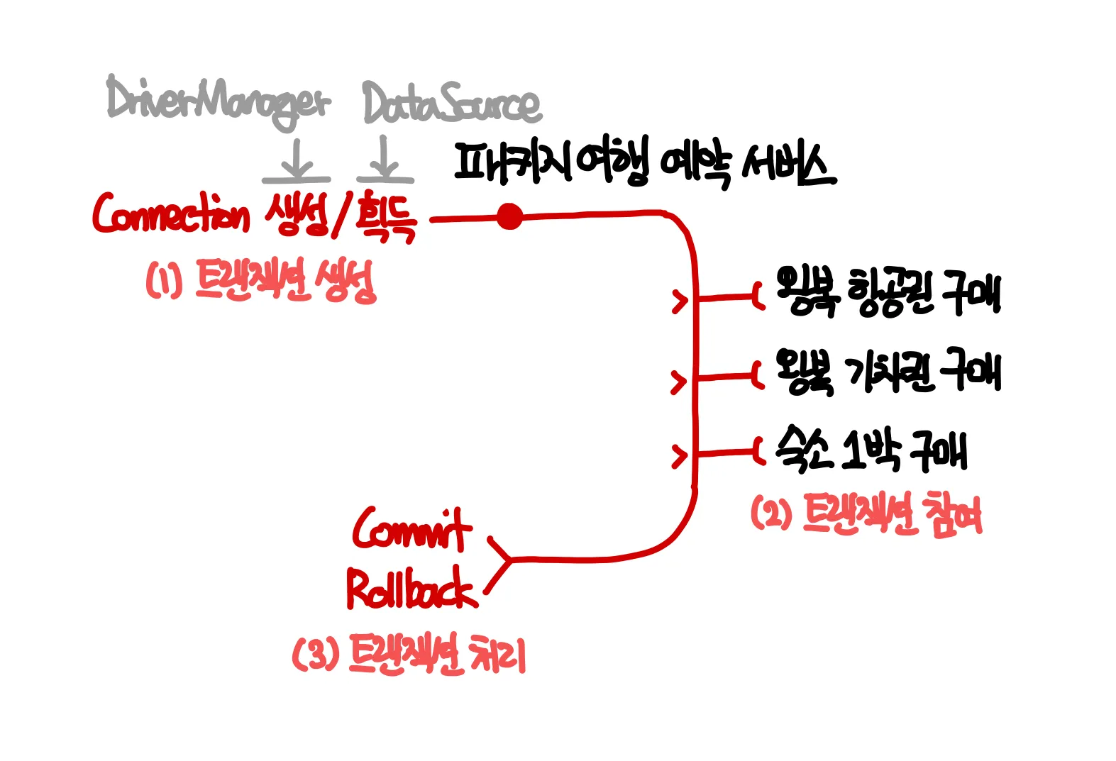 - JDBC API에서 다수의 쿼리를 하나의 트랜잭션으로 묶으려면 수동으로 Connection 객체를 관리해야 했다.
